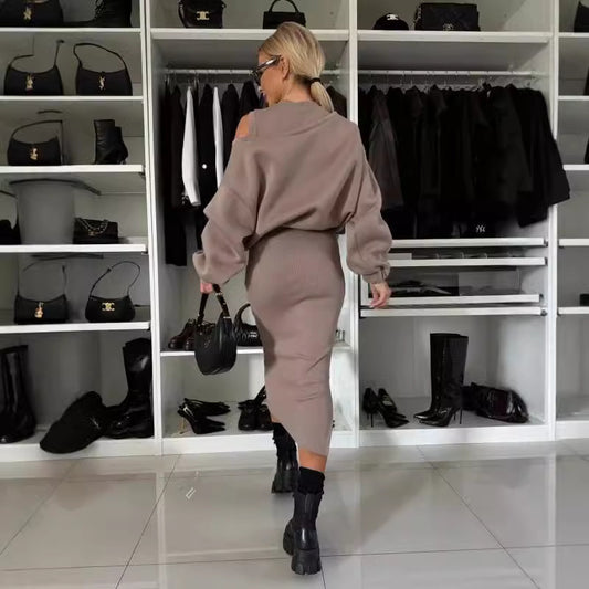 Off-Shoulder Top and Midi Dress Set (2 Pieces)